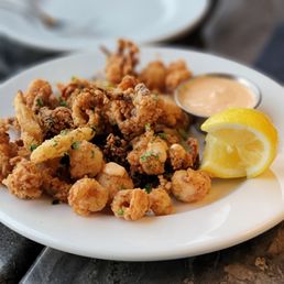 Ambiance and service was great, it was too noisy to eat inside. Outside was nice. It wasn't too hot or too cold. Table was smaller outside for party of 5. We enjoyed the shrimp and calamari fritti. My daughter said their New England Clam chowder was the best she has ever tasted. Bread and butter is not complimentary like $5 which we did order. Sea bass was very tender and flavorful. The spaghetti was tasty per a family member. Lobster roll is good and fries extra tasty. Prime rib slider was good as well.